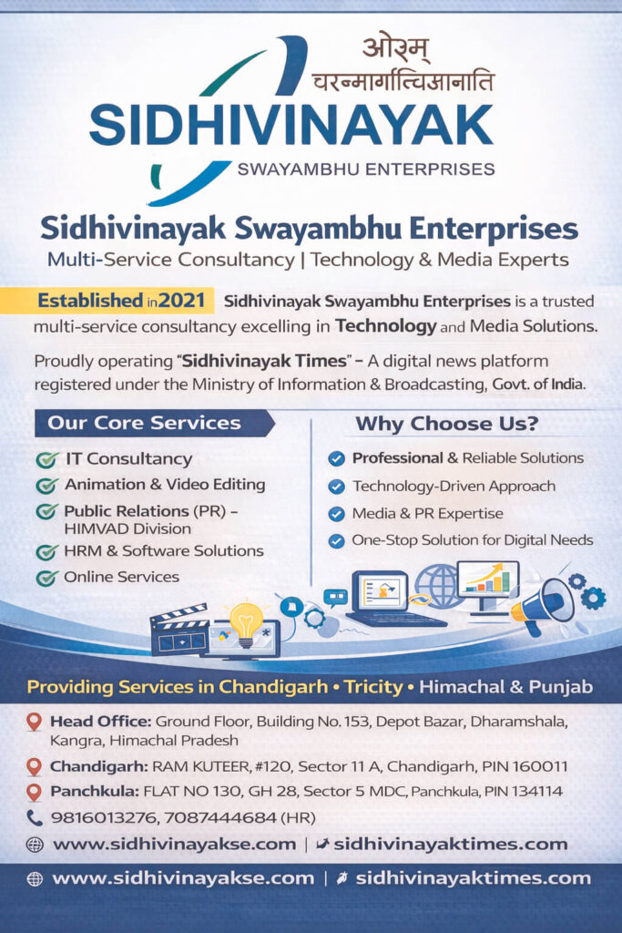 Stay Connected with Sidhivinayaktimes: To stay updated with the latest news from Himachal Pradesh and beyond, visit our website or download our mobile app today. Follow us on social media for real-time updates and join our community of engaged viewers. Thank you for choosing