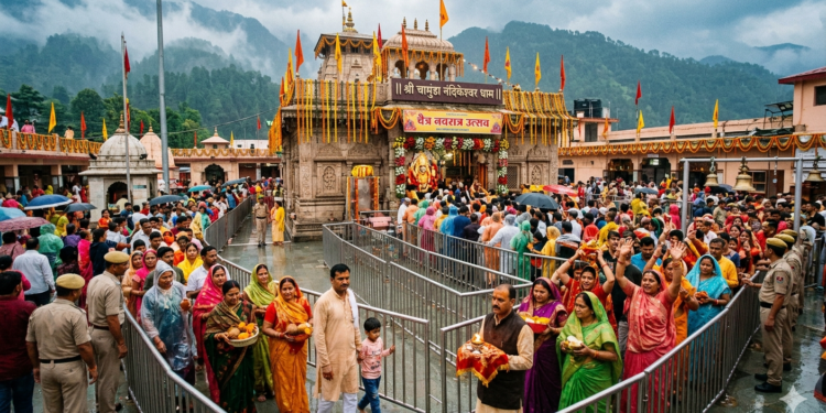 धर्मशाला: हिमाचल प्रदेश के प्रसिद्ध शक्तिपीठ चामुंडा नंदिकेश्वर धाम में नवसंवत्सर और चैत्र नवरात्रि के पावन अवसर पर श्रद्धा और भक्ति का अद्भुत संगम देखने को मिल रहा है। नवरात्रि के प्रथम दिन ही उत्तर भारत के कोने-कोने से हजारों की संख्या में श्रद्धालु माता रानी के दर्शन के लिए मंदिर पहुँचे। पूरा मंदिर परिसर “जय माता दी” के जयकारों से गुंजायमान रहा और वातावरण पूरी तरह भक्तिमय हो गया।