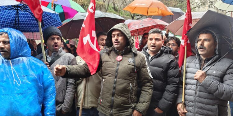 शिमला :- प्रदेश में 108 व 102 एंबुलेंस कर्मचारियों का आंदोलन लगातार तेज होता जा रहा है। सीटू के बैनर तले प्रदेशभर में कार्यरत सैकड़ों कर्मचारी पांच दिन की हड़ताल पर हैं और तीसरे दिन भी छोटा शिमला स्थित सचिवालय के बाहर बारिश के बावजूद डटे रहे। इस प्रदेशव्यापी हड़ताल के चलते तीसरे दिन भी एंबुलेंस सेवाएं पूरी तरह बाधित रहीं, जिससे स्वास्थ्य सेवाओं पर भी असर पड़ा। यूनियन ने साफ चेतावनी दी है कि यदि उनकी मांगों को जल्द पूरा नहीं किया गया तो आंदोलन को और तेज करते हुए निर्णायक संघर्ष छेड़ा जाएगा।