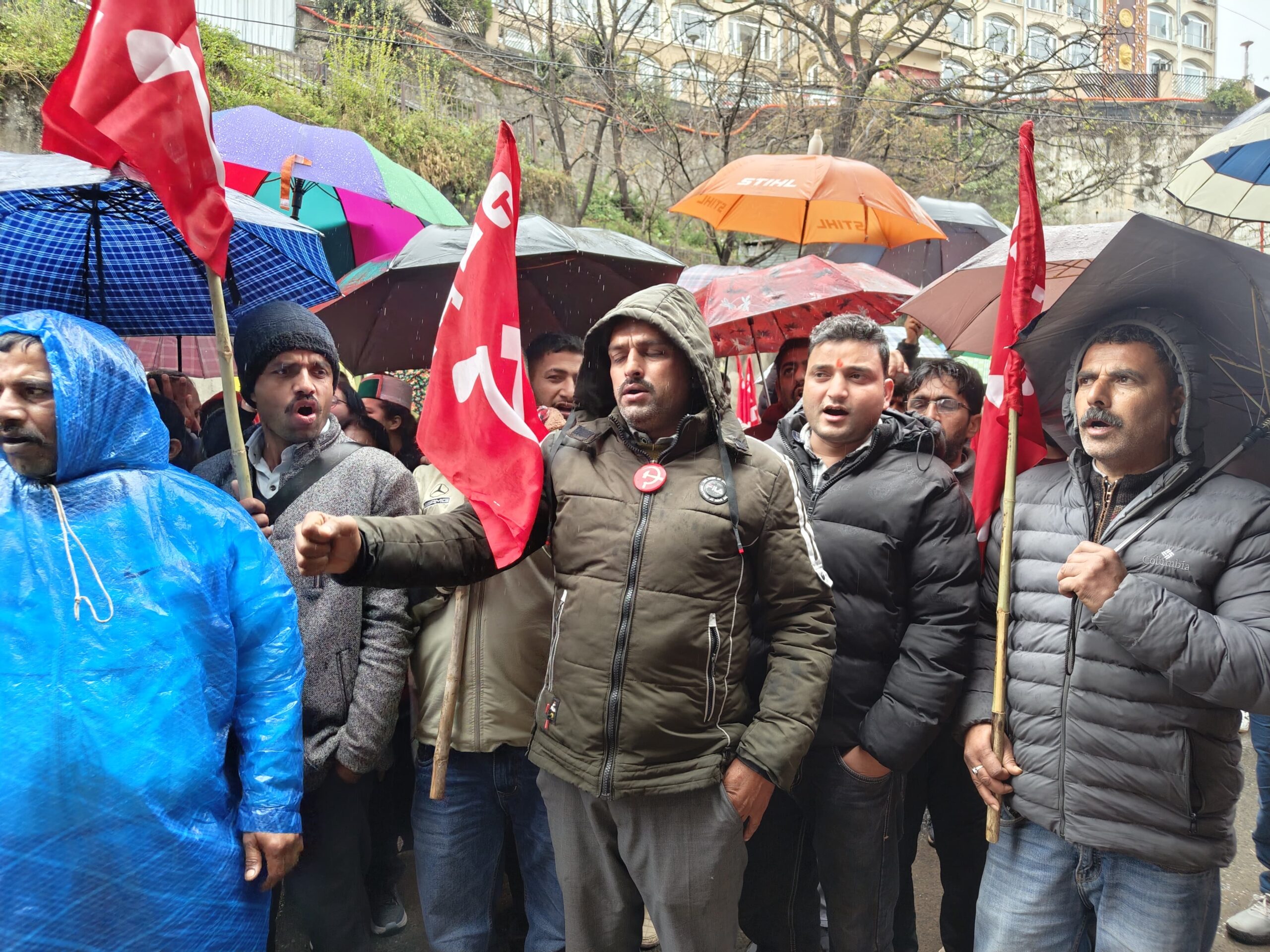 शिमला :- प्रदेश में 108 व 102 एंबुलेंस कर्मचारियों का आंदोलन लगातार तेज होता जा रहा है। सीटू के बैनर तले प्रदेशभर में कार्यरत सैकड़ों कर्मचारी पांच दिन की हड़ताल पर हैं और तीसरे दिन भी छोटा शिमला स्थित सचिवालय के बाहर बारिश के बावजूद डटे रहे। इस प्रदेशव्यापी हड़ताल के चलते तीसरे दिन भी एंबुलेंस सेवाएं पूरी तरह बाधित रहीं, जिससे स्वास्थ्य सेवाओं पर भी असर पड़ा। यूनियन ने साफ चेतावनी दी है कि यदि उनकी मांगों को जल्द पूरा नहीं किया गया तो आंदोलन को और तेज करते हुए निर्णायक संघर्ष छेड़ा जाएगा।