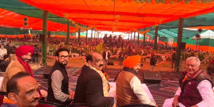 Sidhivinayak taimes Shimla। During the Maghi Mela at Sri Muktsar Sahib on January 14, 2026, the Bharatiya Janata Party (BJP) launched a strong attack on the Aam Aadmi Party (AAP) government in Punjab, highlighting issues of drugs, gangsterism, corruption, and deteriorating law and order. Addressing the gathering, Haryana Chief Minister Nayab Singh Saini criticized the Punjab government for failing to fulfill farmers’ promises, contrasting it with Haryana’s “double-engine” governance model. BJP leaders, including National General Secretary Tarun Chugh, Punjab President Sunil Jakhar, and Union Minister Anurag Thakur, paid homage to the 40 Muktas and accused AAP and Congress leaders of disrespecting Sikh traditions, mismanaging welfare schemes, and ignoring public safety.