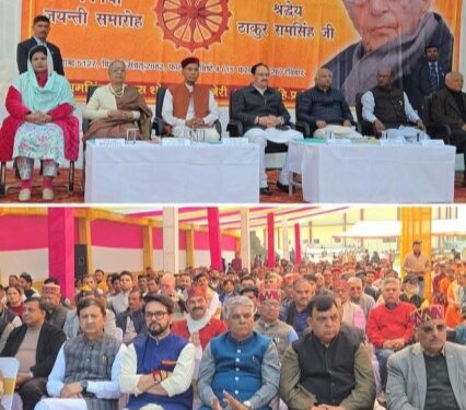 अपने संबोधन में केंद्रीय मंत्री जगत प्रकाश नड्डा ने कहा कि ठाकुर रामसिंह का जीवन राष्ट्र सेवा, सामाजिक समरसता और ऐतिहासिक चेतना के संरक्षण का उत्कृष्ट उदाहरण है। उन्होंने कहा कि ऐसे महापुरुषों की जयंती केवल स्मरण का अवसर नहीं, बल्कि उनके आदर्शों को आत्मसात करने का संकल्प दिवस भी है। मुख्य वक्ता सुरेश सोनी ने उनके व्यक्तित्व और विचारधारा पर प्रकाश डालते हुए युवाओं को अपने इतिहास और सांस्कृतिक विरासत से जुड़ने का संदेश दिया। कार्यक्रम अध्यक्ष प्रो. ईश्वर शरण विवेकर्मा ने संस्थान की गतिविधियों और शोध कार्यों की जानकारी देते हुए कहा कि यह संस्थान ऐतिहासिक तथ्यों के संरक्षण और प्रचार-प्रसार के लिए निरंतर कार्यरत है। पूर्व मुख्यमंत्री प्रेम कुमार धूमल तथा अनुराग सिंह ठाकुर ने भी अपने विचार व्यक्त करते हुए ठाकुर रामसिंह के योगदान को अविस्मरणीय बताया और कहा कि उनके आदर्श समाज को सकारात्मक दिशा प्रदान करते रहेंगे। अन्य वक्ताओं ने भी उनके जीवन संघर्ष, सामाजिक समर्पण और राष्ट्रभक्ति की भावना को रेखांकित किया। समारोह के अंत में सभी उपस्थित अतिथियों और नागरिकों ने ठाकुर रामसिंह के पदचिह्नों पर चलने तथा समाज और राष्ट्र निर्माण में सक्रिय भूमिका निभाने का संकल्प लिया। पूरा वातावरण श्रद्धा, प्रेरणा और राष्ट्रीय चेतना के भाव से ओत-प्रोत रहा। यह आयोजन न केवल एक जयंती समारोह था, बल्कि मूल्यों, संस्कारों और इतिहास के संरक्षण का संदेश देने वाला प्रेरणादायी उत्सव भी सिद्ध हुआ।
