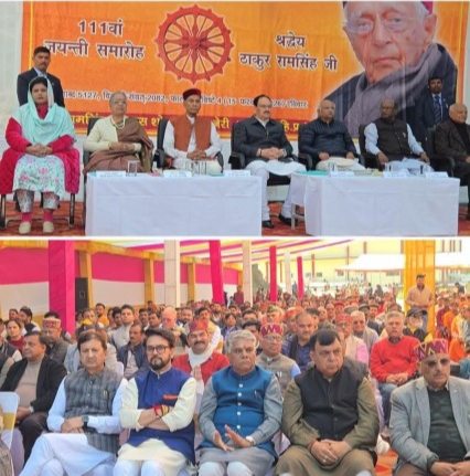अपने संबोधन में केंद्रीय मंत्री जगत प्रकाश नड्डा ने कहा कि ठाकुर रामसिंह का जीवन राष्ट्र सेवा, सामाजिक समरसता और ऐतिहासिक चेतना के संरक्षण का उत्कृष्ट उदाहरण है। उन्होंने कहा कि ऐसे महापुरुषों की जयंती केवल स्मरण का अवसर नहीं, बल्कि उनके आदर्शों को आत्मसात करने का संकल्प दिवस भी है। मुख्य वक्ता सुरेश सोनी ने उनके व्यक्तित्व और विचारधारा पर प्रकाश डालते हुए युवाओं को अपने इतिहास और सांस्कृतिक विरासत से जुड़ने का संदेश दिया। कार्यक्रम अध्यक्ष प्रो. ईश्वर शरण विवेकर्मा ने संस्थान की गतिविधियों और शोध कार्यों की जानकारी देते हुए कहा कि यह संस्थान ऐतिहासिक तथ्यों के संरक्षण और प्रचार-प्रसार के लिए निरंतर कार्यरत है। पूर्व मुख्यमंत्री प्रेम कुमार धूमल तथा अनुराग सिंह ठाकुर ने भी अपने विचार व्यक्त करते हुए ठाकुर रामसिंह के योगदान को अविस्मरणीय बताया और कहा कि उनके आदर्श समाज को सकारात्मक दिशा प्रदान करते रहेंगे। अन्य वक्ताओं ने भी उनके जीवन संघर्ष, सामाजिक समर्पण और राष्ट्रभक्ति की भावना को रेखांकित किया। समारोह के अंत में सभी उपस्थित अतिथियों और नागरिकों ने ठाकुर रामसिंह के पदचिह्नों पर चलने तथा समाज और राष्ट्र निर्माण में सक्रिय भूमिका निभाने का संकल्प लिया। पूरा वातावरण श्रद्धा, प्रेरणा और राष्ट्रीय चेतना के भाव से ओत-प्रोत रहा। यह आयोजन न केवल एक जयंती समारोह था, बल्कि मूल्यों, संस्कारों और इतिहास के संरक्षण का संदेश देने वाला प्रेरणादायी उत्सव भी सिद्ध हुआ।