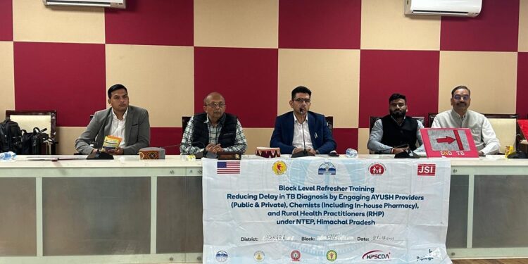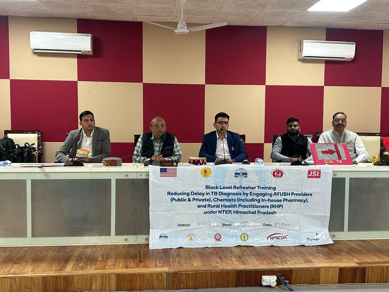 100 दिवसीय टीबी मुक्त भारत अभियान 2.0 के अंतर्गत आज जिला कांगड़ा के धर्मशाला में आयुष अधिकारियों एवं चिकित्सकों के लिए एक भव्य जिला स्तरीय कार्यशाला का सफल आयोजन किया गया। कार्यशाला का आयोजन हिमाचल प्रदेश स्कूल शिक्षा बोर्ड, धर्मशाला के सभागार में किया गया, जहाँ जिले के विभिन्न क्षेत्रों से आए आयुष अधिकारियों एवं चिकित्सकों ने उत्साहपूर्वक सहभागिता की। कार्यशाला का मुख्य उद्देश्य टीबी उन्मूलन के प्रयासों को और अधिक सशक्त, प्रभावी एवं जनभागीदारी आधारित बनाना तथा आयुष विभाग की भूमिका को अभियान में और अधिक सक्रिय एवं मजबूत करना रहा।