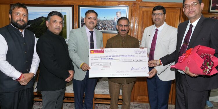 Sidhivinayak taimes Shimla। Chief Minister Thakur Sukhvinder Singh Sukhu was presented with a cheque of ₹1 lakh by the Principal of DAV Centenary Public School, Jawahar Nagar, Mandi, K.S. Guleria on behalf of the school staff towards the Chief Minister Relief Fund. The cheque was handed over during a brief interaction held at Shimla on 12 January 2026. The contribution was made as a gesture of solidarity and support for people in need across the state. Advocate General Anoop Rattan was also present on the occasion.