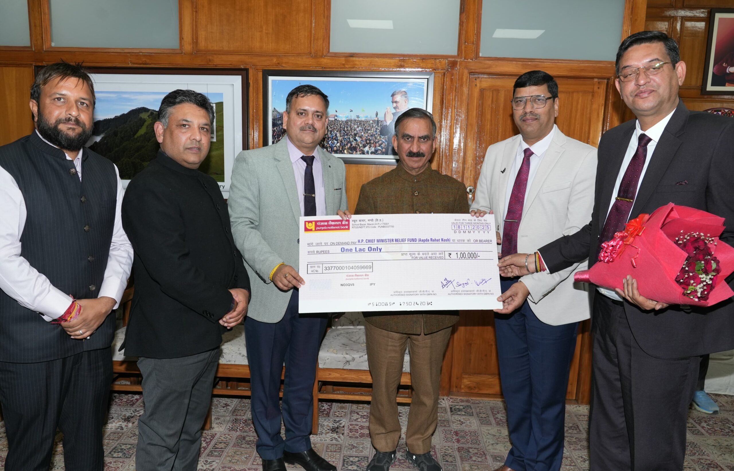 Sidhivinayak taimes Shimla। Chief Minister Thakur Sukhvinder Singh Sukhu was presented with a cheque of ₹1 lakh by the Principal of DAV Centenary Public School, Jawahar Nagar, Mandi, K.S. Guleria on behalf of the school staff towards the Chief Minister Relief Fund. The cheque was handed over during a brief interaction held at Shimla on 12 January 2026. The contribution was made as a gesture of solidarity and support for people in need across the state. Advocate General Anoop Rattan was also present on the occasion.