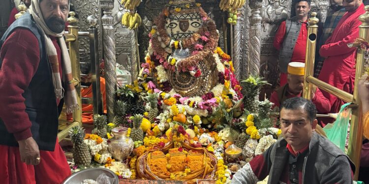 सिद्धिविनायक टाइम्स शिमला। कांगड़ा स्थित शक्तिपीठ माता श्री बज्रेश्वरी देवी मंदिर में घृत पर्व के अवसर पर माता के दरबार में आस्था और भक्ति का अद्भुत संगम देखने को मिल रहा है। इस पावन पर्व पर माता की पिंडी को लगभग 18 क्विंटल मक्खन से अलंकृत किया गया है, वहीं श्रद्धालुओं के दर्शन के लिए साढ़े पांच फीट ऊंची मक्खन से निर्मित विशेष पिंडी भी स्थापित की गई है, जिसके दर्शन अगले सात दिनों तक किए जा सकेंगे। घृत पर्व की शुरुआत के साथ ही मंदिर परिसर में श्रद्धालुओं की भारी भीड़ उमड़ पड़ी और पहले ही दिन आठ हजार से अधिक भक्तों ने माता के चरणों में शीश नवाया। माता के मक्खन श्रृंगार का कार्य बुधवार सायंकाल प्रारंभ होकर देर रात तक चलता रहा, जिसके उपरांत गुरुवार सुबह आरती संपन्न की गई।