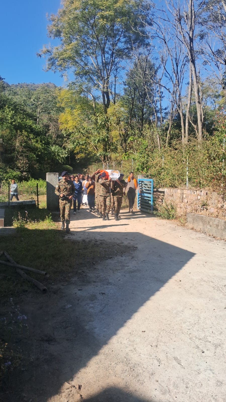 सिधिविनायक टाइम्स: शिमला। उपमंडल बैजनाथ के द्रुग (डंढेरा) गांव निवासी हवलदार संजीव कुमार का 07 दिसंबर को बीमारी के कारण दुखद निधन हो गया। 40 वर्षीय हवलदार का पार्थिव शरीर आज उनके पैतृक गांव लाया गया, जहां उन्हें पूर्ण सैन्य सम्मान के साथ अंतिम विदाई दी गई। इस अवसर पर विधायक बैजनाथ किशोरी लाल भी मौजूद रहे। उन्होंने हवलदार संजीव कुमार को श्रद्धांजलि अर्पित की और शोकाकुल परिवार से मिलकर संवेदनाएं व्यक्त कीं।विधायक ने कहा कि हवलदार संजीव कुमार जैसे वीर सैनिक राष्ट्र की शान होते हैं और देश की सेवा में उनका समर्पण और त्याग हमेशा स्मरणीय रहेगा। उन्होंने परिवार को प्रशासनिक और हर संभव सहयोग का आश्वासन दिया, ताकि इस कठिन समय में उन्हें किसी प्रकार की कठिनाई न झेलनी पड़े। विधायक ने यह भी बताया कि प्रदेश सरकार हमेशा से पूर्व सैनिकों और शहीद परिवारों के सम्मान एवं सहायता के प्रति प्रतिबद्ध रही है और आगे भी परिवार को सभी आवश्यक सहायता उपलब्ध करवाई जाएगी।