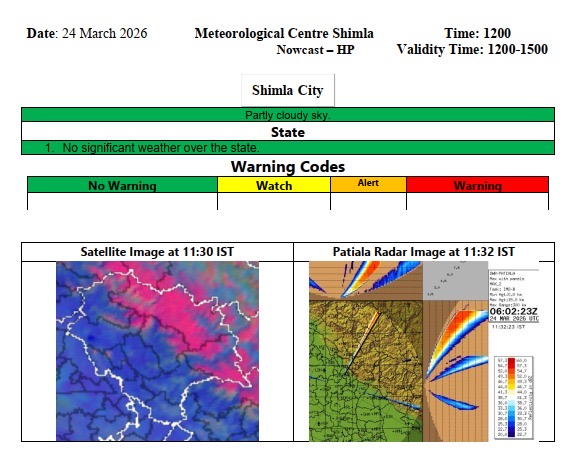 मौसम केंद्र शिमला के वैज्ञानिक संदीप शर्मा ने जानकारी देते हुए बताया कि 23 मार्च को प्रदेश के कुछ हिस्सों में हल्की बारिश और उच्च पर्वतीय क्षेत्रों में हल्का हिमपात होने का पूर्वानुमान है। हालांकि, इसके बाद 24 और 25 मार्च को राज्य के मध्यवर्ती और मैदानी इलाकों में मौसम के फिर से शुष्क रहने की संभावना है, जिससे लोगों को अस्थायी राहत मिल सकती है। मौसम विभाग के अनुसार, 26 मार्च से प्रदेश भर में फिर से वर्षा का दौर शुरू होगा, जबकि 27 मार्च को मध्य व उच्च पर्वतीय क्षेत्रों में बारिश के साथ हल्की बर्फबारी देखने को मिल सकती है।