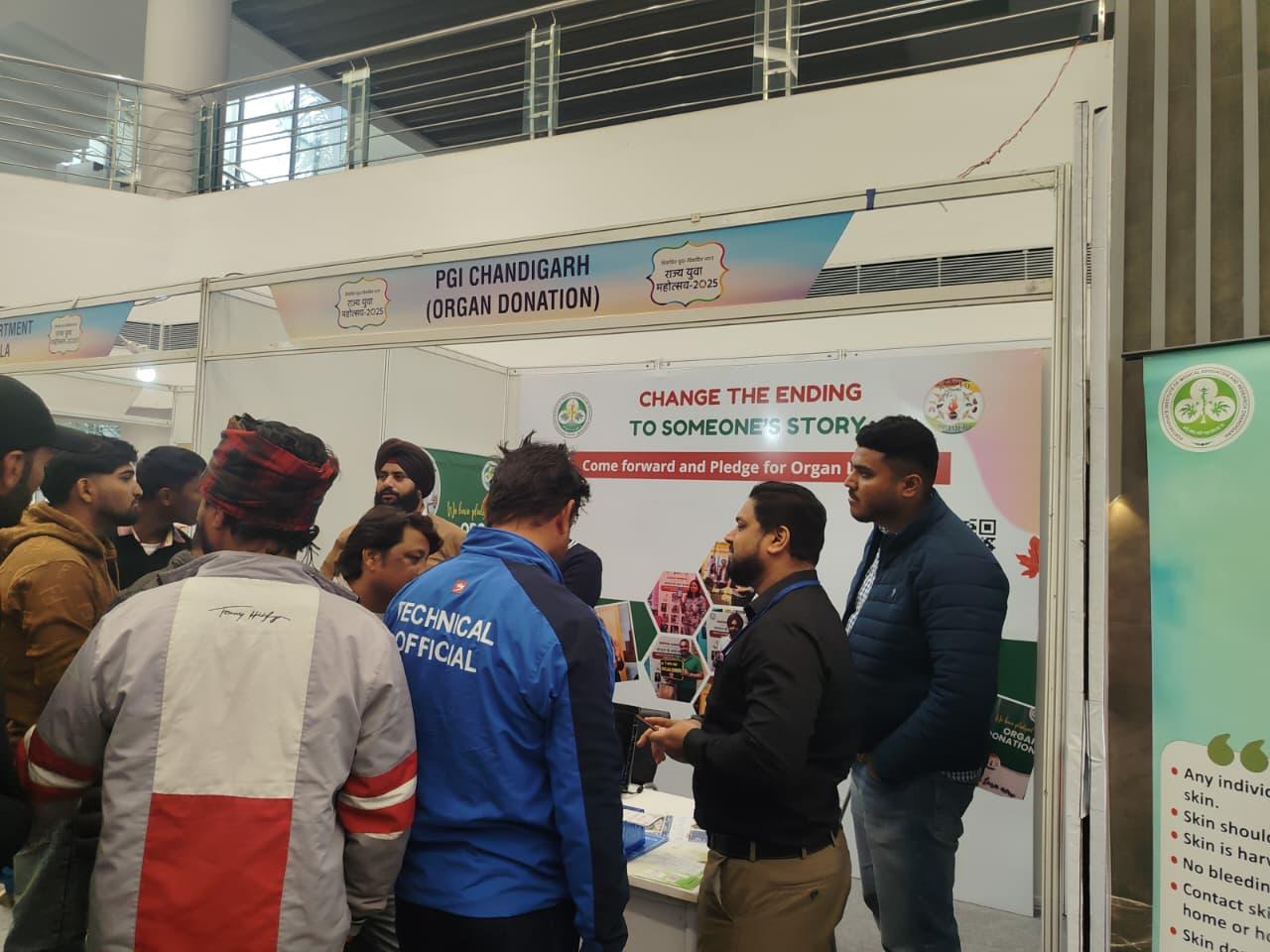 Sidhivinayak time’s Shimla: Chandigarh-based Regional Organ and Tissue Transplant Organisation (ROTTO), PGIMER, made a remarkable impact at the Haryana Youth Festival 2025, held at Indradhanush Auditorium, Sector 5, Panchkula. The three-day event, organised by the Department of Youth Empowerment and Entrepreneurship, saw an enthusiastic participation of students, young professionals, and youth groups, providing ROTTO–PGIMER a unique platform to raise awareness about the critical importance of organ donation. The awareness stall set up by ROTTO–PGIMER quickly became a focal point of the festival, attracting large numbers of attendees keen to learn about the life-saving potential of organ donation. The team conducted interactive sessions, explained the concept of brain death, and addressed common misconceptions, showing how a single donor can transform multiple lives. Over the course of the festival, 234 young participants pledged to support organ donation, demonstrating a strong commitment among Haryana’s youth to this humanitarian cause.