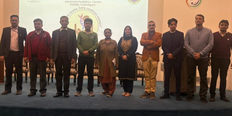 Sidhivinayak taimes Shimla। The Postgraduate Institute of Medical Education and Research (PGIMER), Chandigarh, recently hosted a national workshop on rare diseases under the National Policy for Rare Diseases (NPRD) in collaboration with the Ministry of Health and Family Welfare. The event brought together clinicians, researchers, and policymakers from across the country to discuss the current status, challenges, and latest advances in the diagnosis and management of rare diseases in India. The workshop aimed to enhance awareness, improve early diagnosis, and promote coordinated care and policy implementation for patients affected by rare conditions. Addressing the participants, Prof. Praveen Kumar, Head of the Department of Pediatrics and Chairperson of the NPRD Cell at PGIMER, highlighted that although each rare disease affects a small number of individuals, collectively they impact a significant population.