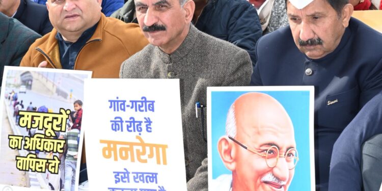 सिद्धिविनायक टाइम्स शिमला शिमला, 29 दिसंबर 2025: मुख्यमंत्री ठाकुर सुखविन्द्र सिंह सुक्खू ने केंद्र सरकार द्वारा मनरेगा को समाप्त करने के निर्णय को जनविरोधी बताते हुए कहा कि इससे ग्रामीण क्षेत्रों के गरीब और श्रमिक वर्ग को गंभीर नुकसान होगा। उन्होंने रिज मैदान शिमला में महात्मा गांधी की प्रतिमा के समीप अपने मंत्रिमंडल सहयोगियों के साथ धरना देते हुए कहा कि मनरेगा कांग्रेस सरकार की दूरदर्शी सोच का परिणाम था, जिसने ग्रामीण भारत को रोजगार की गारंटी दी। मुख्यमंत्री ने कहा कि पहले पंचायतों की मांग के अनुरूप विकास कार्य तय किए जाते थे, लेकिन नए प्रावधानों से पंचायतों के अधिकार सीमित हो गए हैं।