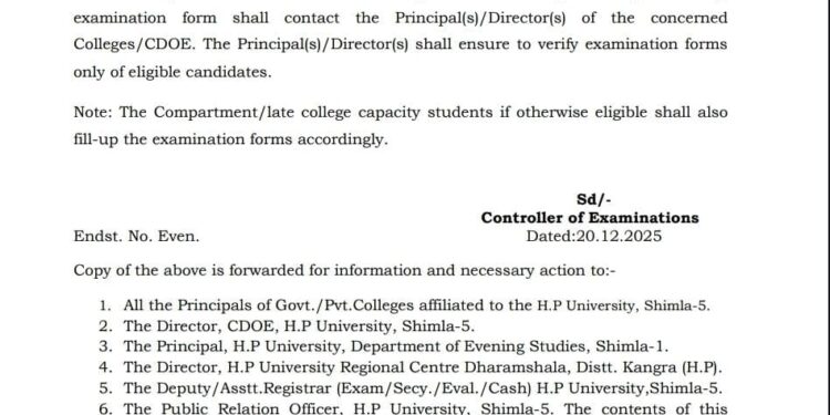 SidhivinayakTimes > Himachal > यूनिवर्सिटी परीक्षा फ़ॉर्म भरने की अंतिम तिथि जारी, 10 जनवरी 2026 तक करें आवेदन